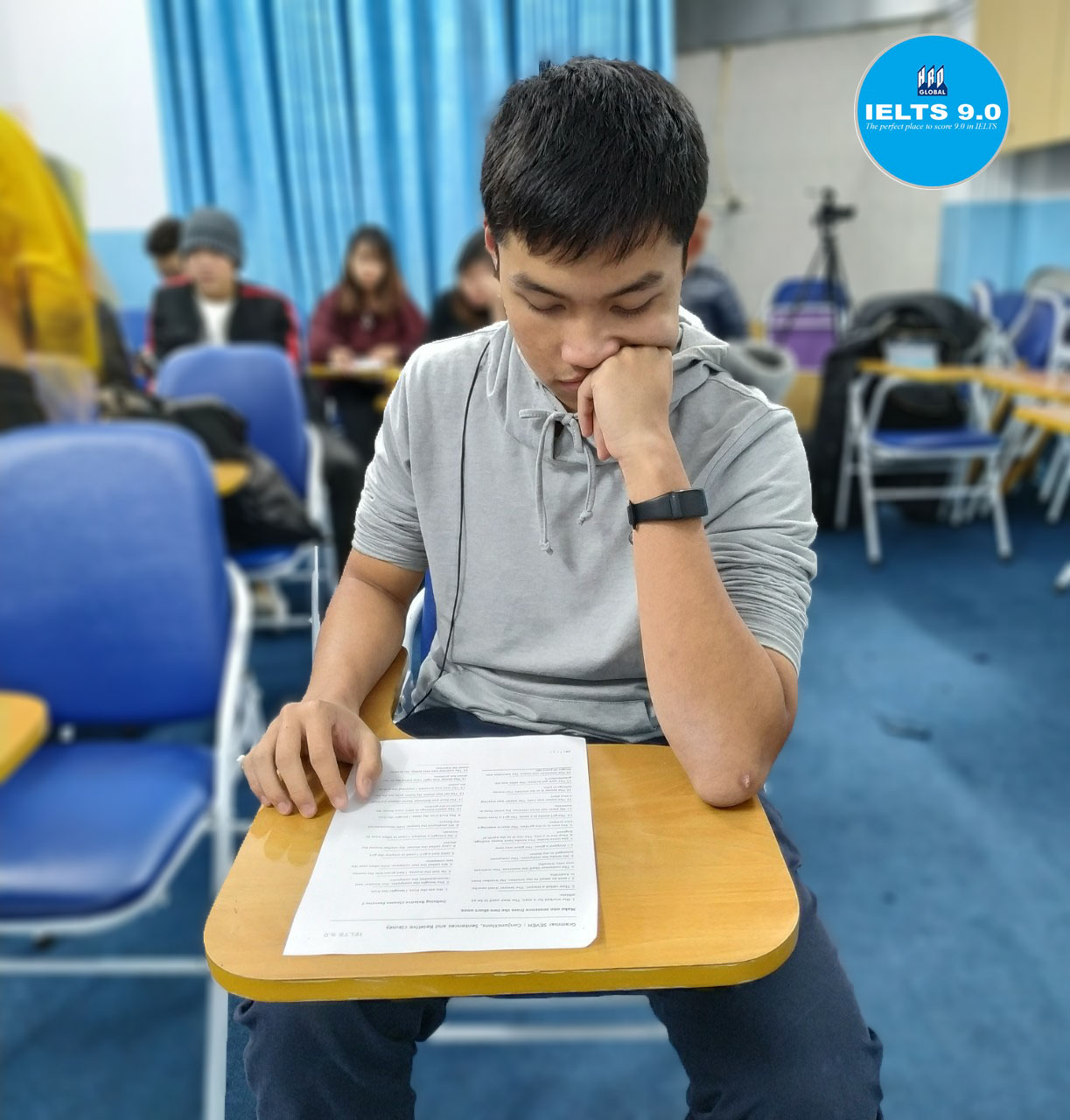 Hoàng Lân bắt đầu tham gia luyện thi IELTS tại IELTS 9.0 vào ngày đầu tháng 11. Cậu học viên này đã làm bài kiểm tra trình độ đầu vào và đạt số điểm là. Listening 6.0, Reading 4.5, Speaking 5.0 và Writing 4.5. Tổng điểm: 5.0 .